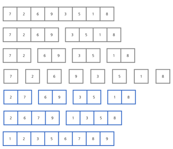 - 분할 분할 분할 분할.... 병합 병합 병합 병합... 을 반복한 결과