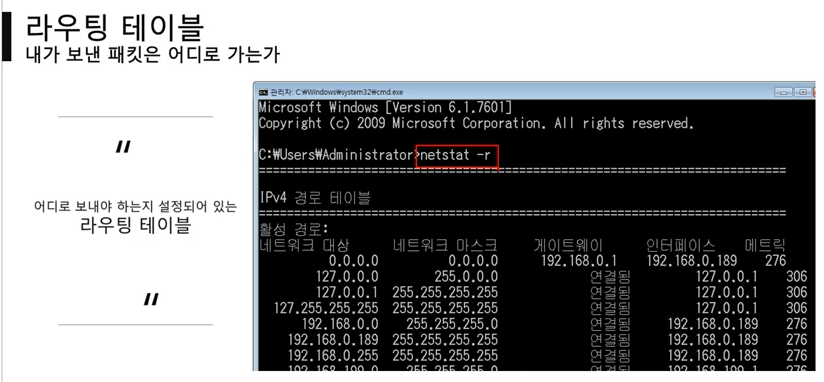 (1) 라우팅 테이블 통해, 공유기로의 IP대역대 확인