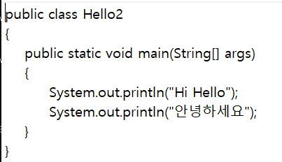 다. 실행하기 - java + 클래스파일명 (ex. java Hello)