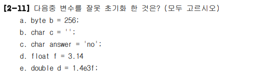 | 정수형 | byte | short | int | long |