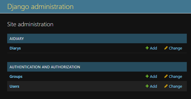App 폴더 하위에 보면 admin.py 파일이 있어요. 거기에 위처럼 admin.site.register(Diary) 요렇게 생성한 모델을 적용해두면, 어드민 페이지에 Diary에 대한 CRUD 작업을 할 수가 있습니다.