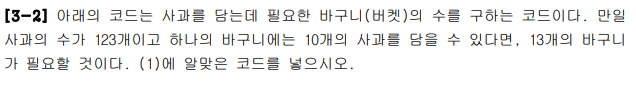 //나 : numOfApples/sizeOfBucket+(numOfApples%sizeOfBucket==0? 0 : 1)