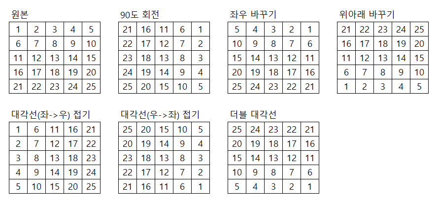 [2차원 배열 예제_ 여러 방향으로 뒤집기]
