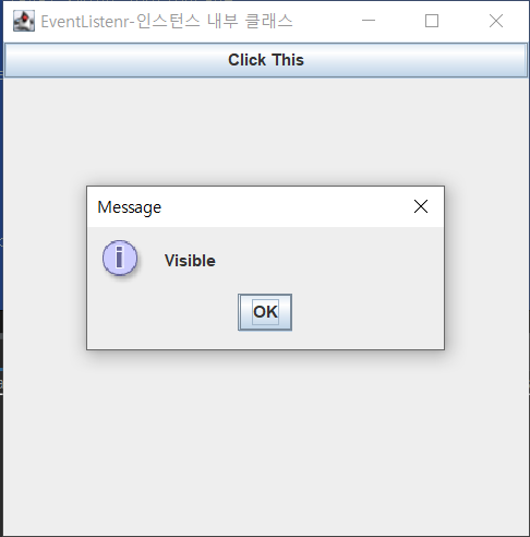 JOptionPane.showMessageDialog(EventTest.this, "Visible");