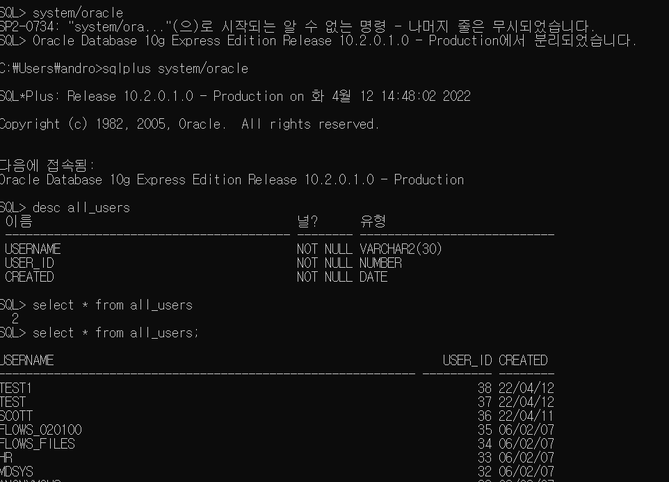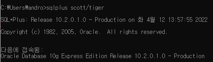 [방법2] CMD창에서 클라이언트 도구 sqlplus.exe 통해 접속하기