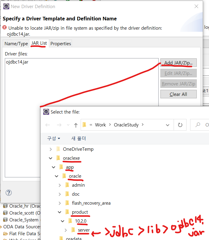 [1] 오라클's이클립스 연결 파일(driver) 경로로 이동