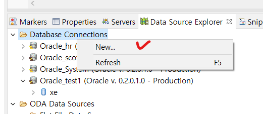 [1] [Data Source Explorer] 탭 > [Database Connection] > new