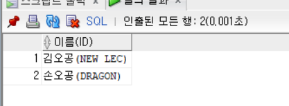 SELECT NAME || '(' || ID || ')' "이름(ID)" FROM MEMBER;