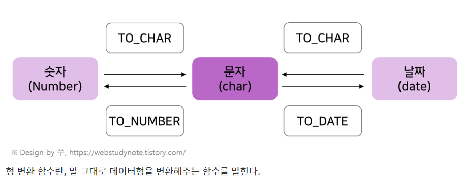 DATE형, NUMBER형을 문자 타입으로 변환 |