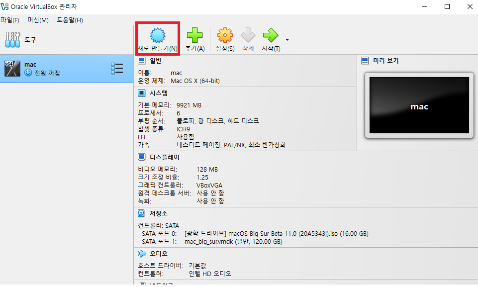 [1] [새로만들기] 를 눌러 가상 머신을 만든다.