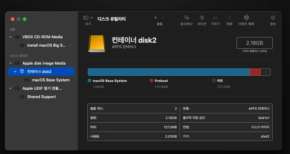 * 가급적 Mac OS 버전을 13 이상으로 까는 걸 추천한다. Redcat 같은 앱은 버전 13 이상이어야 가능..
