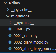 이 기능이 진짜 좋은게, migrations 폴더 하위를 보면 변동사항이 생길 때마다 이렇게 무슨 짓(?)을 했는지가 기록으로 남아 있어요. 전체적인 수정사항을 확인할 수 있어서 좋다는 생각을 했습니다.