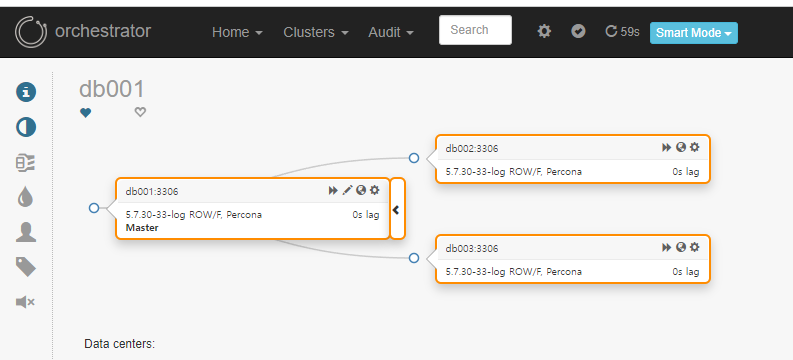 - https://{{호스트ip}}:3000/web/clusters 로 접속한다. - clusters > discover 에 들어가서, 마스터 컨테이너명(db001) : 포트(3306) 를 입력한다.