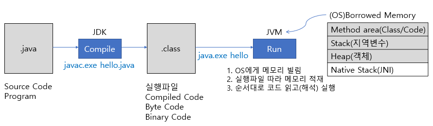 | 자바 프로그램 | RAM | 외부 입력 장치 | ||||