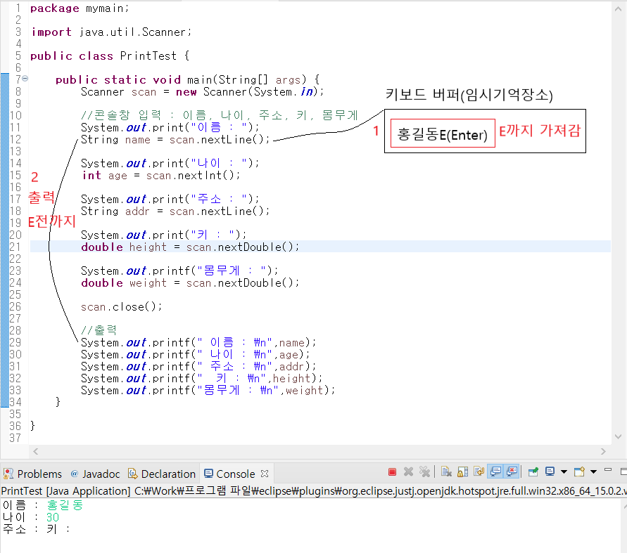 | int ch | ← | System.in.read() | ← | 키보드 버퍼 | ← | 키보드 |