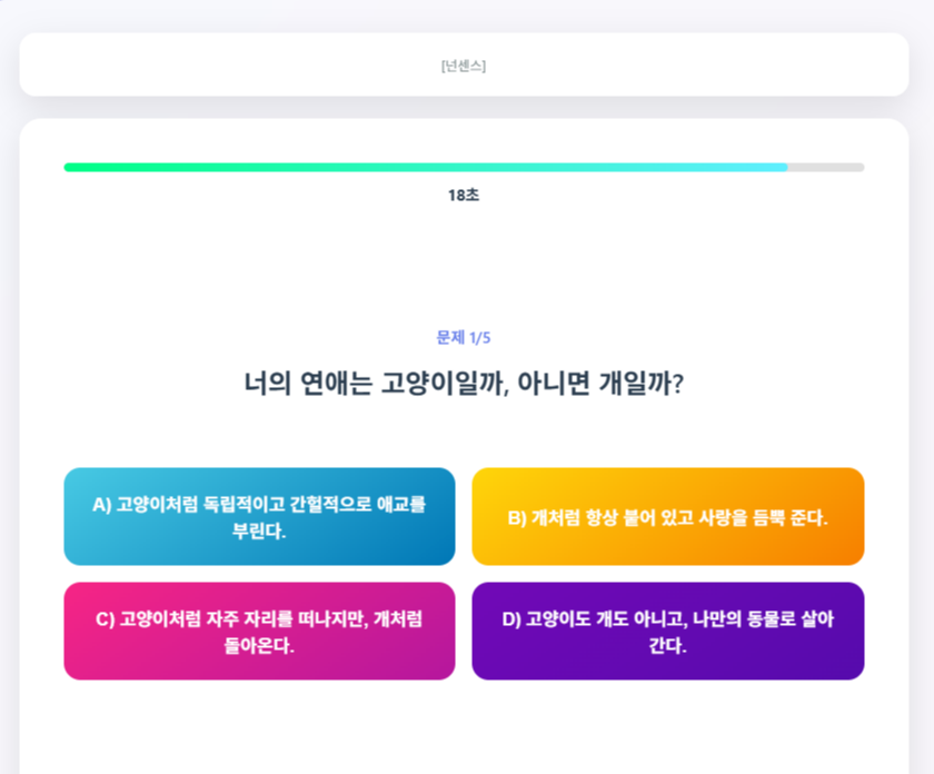 • 퀴즈가 시작되면 5초 안에 각 문항을 풀어야한다.