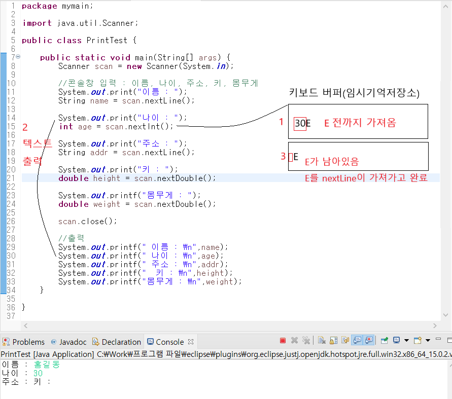 ▼ nextDouble() --> nextLine() : 앞전에 남은 E를 nextLine()이 가져옴